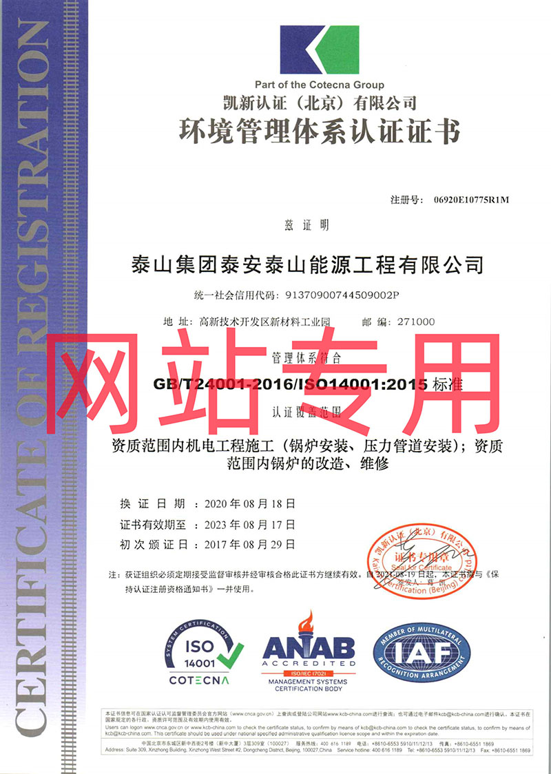 環(huán)境管理體系認證證書